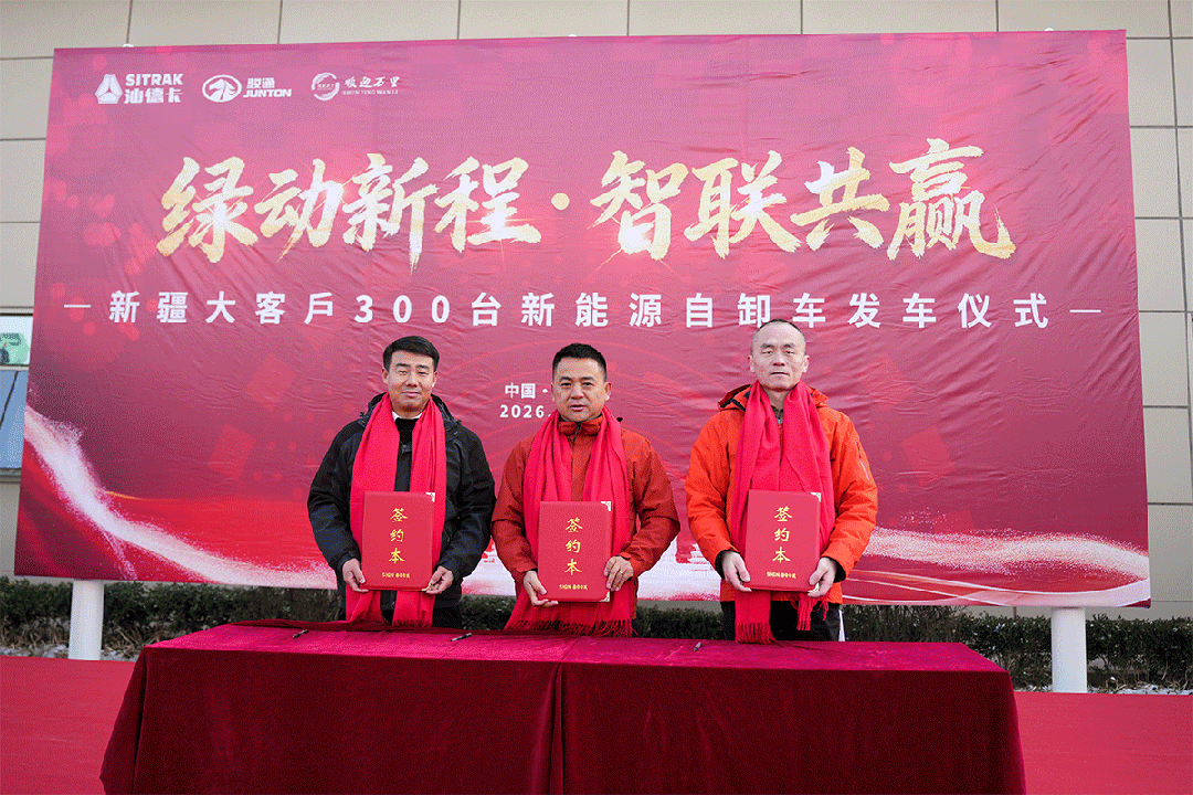 随着发车指令的下达,300台中国重汽汕德卡新能源自卸车依次鸣笛启程,沿着既定路线奔赴新疆,正式开启绿色运输新征程。现场,新疆客户表示:“选择中国重汽汕德卡新能源自卸车,一方面因其完美契合新疆当地环保政策要求,能够助力企业实现合规运营;另一方面,其运营成本较传统燃油车降低30%,显著拓宽了企业的盈利空间。”真实的使用体验与亮眼的成本优势,最终赢得了场嘉宾对汕德卡新能源产品的一致赞誉。